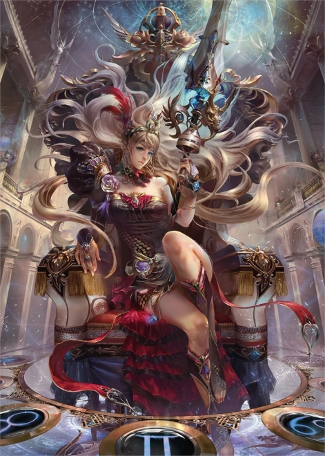 Bucură-te de relaxare cu frumosul puzzle JUMBO de 1000 de piese. Motivul „Regina zodiacului” îi va încânta pe iubitorii de stele și semne. Piesele se potrivesc perfect, au print de calitate și culori intense pentru o imagine finală impecabilă cu dimensiunea de aprox. 49 × 68 cm. Ideal pentru odihnă, antrenarea răbdării și ca decorațiune stilată după lipire.