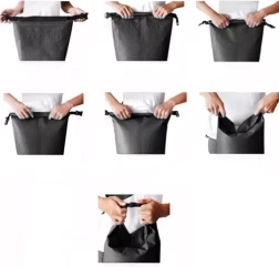 Rulează marginea cel puțin de trei ori și prinde catarama – o etanșare simplă și eficientă împotriva apei și a deschiderii accidentale.