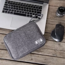 Fără cabluri încâlcite și fund de rucsac haotic. Acest organizer ingenios îmbină poliesterul ușor și rezistent cu o compartimentare practică, astfel încât să depozitezi cabluri USB, încărcătoare, căști și adaptoare în siguranță și ordonat. Dimensiunile compacte de 24 × 17 × 2,5 cm încape perfect în geantă sau bagajul de mână.