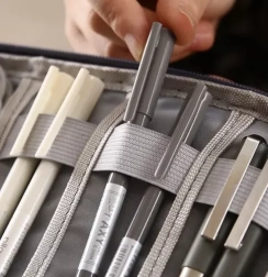 La interior găsești 6 buzunare din plasă pentru o vedere rapidă și 8 benzi elastice pentru fixarea fermă a accesoriilor. Fermoarul protejează conținutul, căptușeala din spumă amortizează șocurile, iar cureaua pentru încheietură facilitează transportul. Potrivit pentru muncă, studiu și călătorii.