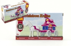 Calul alb impunător trage o caleașcă fermecătoare, în care se împlinesc visele. Setul de construcție Dromader este o alegere excelentă pentru copiii care iubesc poveștile și jocul creativ. Datorită celor 57 de piese, copiii își pot construi cu ușurință propria caleașcă și pot porni într-o aventură minunată spre castel.