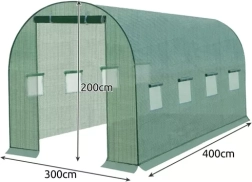 Folia groasă și rezistentă la tracțiune este fabricată din PE cu plasă încorporată. Este destinată tunelului de grădină cu dimensiunile 2 x 2 x 2 m. Montajul este foarte ușor, husa de folie trebuie fixată cât mai strâns pe cadrul de oțel, eliminând efectele negative ale vântului puternic, ploii și soarelui. Folia pentru tunel are două fermoare rezistente. Intrarea poate fi, de asemenea, pliată și fixată cu o carabină. Ferestrele laterale sunt echipate cu plasă antițânțari, care asigură umiditatea corectă și circulația aerului în tunel. Fusta laterală pentru stabilizare trebuie acoperită cu pământ sau presată cu pietre. Astfel tunelul va fi protejat de vântul care poate ridica folia. Tunelul de folie horticolă prelungește perioada de vegetație a legumelor de la începutul primăverii până târziu în toamnă. Oferă rezultate excelente la cultivarea legumelor iubitoare de căldură, precum roșiile. O soluție practică și economică pentru utilizare în grădinile de acasă.