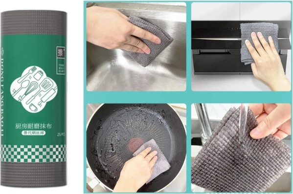 Păstrați bucătăria impecabilă cu rola de prosoape și bureți gri, cu dimensiunile 20 × 9 cm. În pachet găsiți 25 de bucăți, excelente pentru ștergerea lichidelor vărsate, curățarea blaturilor, chiuvetei și electrocasnicelor. Datorită rolei practice, rupeți ușor bucata necesară și o folosiți imediat.