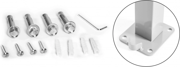 - Fixare pe perete și în podea, accesorii de ancorare incluse în pachet