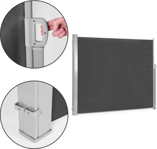 Acest paravan lateral extensibil reprezintă o soluție inteligentă și stilată pentru spațiile exterioare și interioare. Cu el creați o zonă privată pentru relaxare, vă protejează de soarele puternic și rafalele de vânt și completează spațiul cu un aspect modern antracit. Îl puteți folosi pe terasă, balcon, lângă pergolă sau ca separator mobil practic în atelier ori birou.