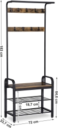 Sub cuier se află 2 rafturi rezistente și spațioase pentru pantofi, care te ajută să îți organizezi încălțămintea acasă, și un șezut care îți permite să te încalți confortabil.
