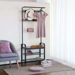 Te-ai săturat de dezordinea din hol sau coridor? Ai jachete și paltoane aruncate pe scaune și fotolii în living și sufragerie, în loc să fie atârnate pe cuier? Dacă răspunsul este da, ești în locul potrivit. Îți prezentăm un suport pentru haine cu șezut și rafturi pentru pantofi, care aduce ordine. Această piesă de mobilier practică îți organizează hainele de exterior, accesoriile și alte mărunțișuri, precum cheile.