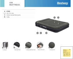 Patul gonflabil Bestway Queen Tritech este conceput pentru confort maxim și durabilitate. Sistemul intern de susținere Tritech este mai rezistent la întindere și își menține mai bine forma chiar și la încărcături mai mari, astfel încât greutatea se distribuie uniform pe toată suprafața. Suprafața de velur este plăcută la atingere și sporește confortul în timpul somnului.
