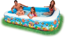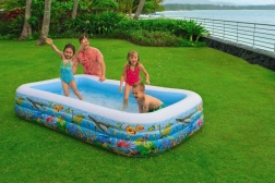 Bucurați-vă împreună cu copiii de distracția acvatică chiar în grădina voastră! Piscina gonflabilă cu motivul lumii subacvatice oferă suficient spațiu pentru întreaga familie.