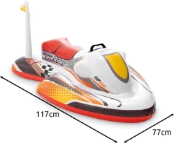 Plută gonflabilă pentru copii, distractivă și sigură, în formă de scuter de la INTEXstabilitate, ședere confortabilă și mâner practic pentru prindere sigură. Datorită construcției late nu se răstoarnă în timpul jocului, se gonflează ușor și, după dezumflare, încape în geanta de plajă. Ideal pentru piscină, lac și ape liniștite.
