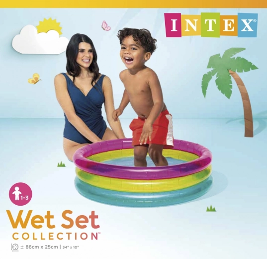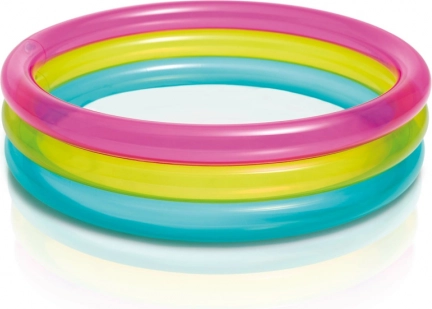Piscina gonflabilă pentru copii INTEX Rainbow este un ajutor practic și plin de culoare pentru zilele de vară. Datorită celor trei inele transparente, este stabilă și confortabilă, iar dimensiunile compacte de 86 × 25 cm se potrivesc în majoritatea grădinilor, teraselor și balcoanelor. Capacitatea de 68 de litri la înălțimea recomandată a apei de 17 cm asigură o suprafață de apă sigură și puțin adâncă pentru copilași.