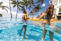 Plasa de volei plutitoare INTEX aduce în piscina ta distracție sportivă și mișcare. Vinilul robust cu grosimea de 0,25 mm și întăriturile laterale oferă stabilitate, în timp ce ancorele cu greutăți mențin construcția pe loc chiar și în timpul unui joc mai alert. În pachet este inclusă și o minge gonflabilă, astfel că poți începe imediat.