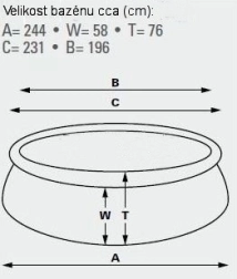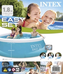 Piscină autoportantă. Dimensiuni 183 cm (circumferința superioară 145 cm) x 51 cm. Înălțimea apei 41 cm. Capacitate 900 L.