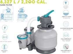 Această pompă, cu un debit de 8327 litri pe oră, este potrivită pentru piscine cu o capacitate între 1.100 și 54.500 de litri. Pentru funcționare necesită nisip de siliciu nr. 20 (0,45-0,85 mm) sau bile filtrante foarte eficiente POLYSPHERE.