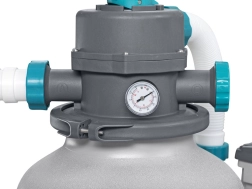 Include un rezervor solid, anticoroziv. Orificiul superior se rotește la 360 de grade, facilitând conectarea furtunurilor din orice parte a dispozitivului. Are, de asemenea, o supapă cu 6 poziții pentru schimbarea ușoară a funcțiilor de filtrare, precum spălare inversă, clătire, evacuare și circulație. Manometrul integrat permite citirea ușoară a presiunii din rezervor.