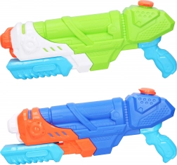 Acest pistol cu apă, cu mecanism de pompare, aduce acțiune imediată – pur și simplu pompezi apa și lansezi un jet răcoritor. Datorită lungimii de 46 cm, se ține bine în mână și este grozav pentru jocuri și dueluri de vară cu prietenii.