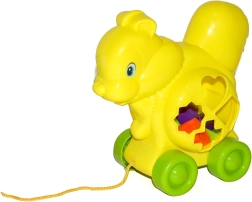 Această jucărie isteață îmbină bucuria mișcării cu învățarea. Animaluțul cu șnur se rostogolește lin pe patru roți, iar corpul servește ca sortator de forme. Copiii își exersează coordonarea mână–ochi, gândirea logică și percepția vizuală.