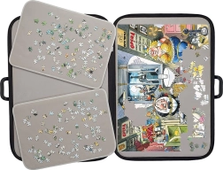Două tăvițe detașabile simplifică sortarea culorilor și formelor, astfel încât să asamblați mai eficient și mai ordonat – acasă pe masă, pe canapea sau în călătorii. Mapa are un profil subțire și se introduce ușor sub pat sau lângă dulap, astfel încât nu încurcă.