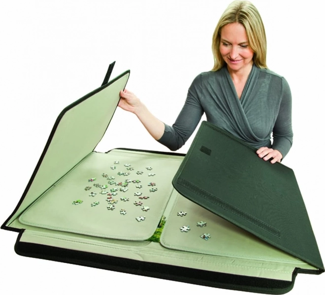 Pachetul include două tăblițe separate pentru sortarea și depozitarea pieselor. Benzile cu arici asigură o fixare fermă, pentru a preveni deplasarea în timpul transportului. Mapa este destinată puzzle-urilor de până la aprox. 68 × 49 cm (500–1000 piese).