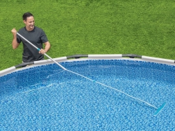 Peria pentru curățarea piscinelor Bestway este concepută pentru a te ajuta să asiguri curățenia și întreținerea piscinei. Dispune de peri albi puternici și un mâner robust turcoaz, care permit frecarea eficientă a suprafețelor. Datorită designului curbat, ajungi ușor chiar și la locurile greu accesibile.