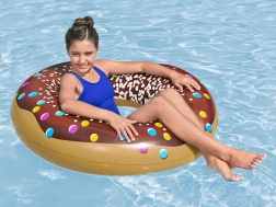Acest colac stilat în formă de donut mușcat se remarcă prin culori vii și un aspect jucăuș. Datorită diametrului de 107 cm, este potrivit pentru adulți și copii mai mari și oferă un sprijin excelent pentru relaxare la suprafața apei.