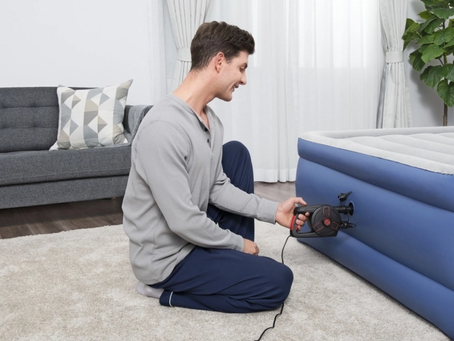 Această pompă electrică de la marca Bestway combină performanța puternică cu compatibilitatea versatilă. Este echipată cu trei valve universale, ceea ce o face ideală pentru diverse articole gonflabile, cum ar fi saltelele, jucăriile de piscină și altele. Cu un debit de aer de 1100 l/min, pompa asigură umflarea rapidă și poate fi comutată ușor pe modul de dezumflare pentru o depozitare facilă. Pompa este alimentată de la priza de uz casnic 220 V și atinge o presiune de 0,97 PSI, ceea ce o face potrivită chiar și pentru obiecte mai mari care necesită presiune mare.