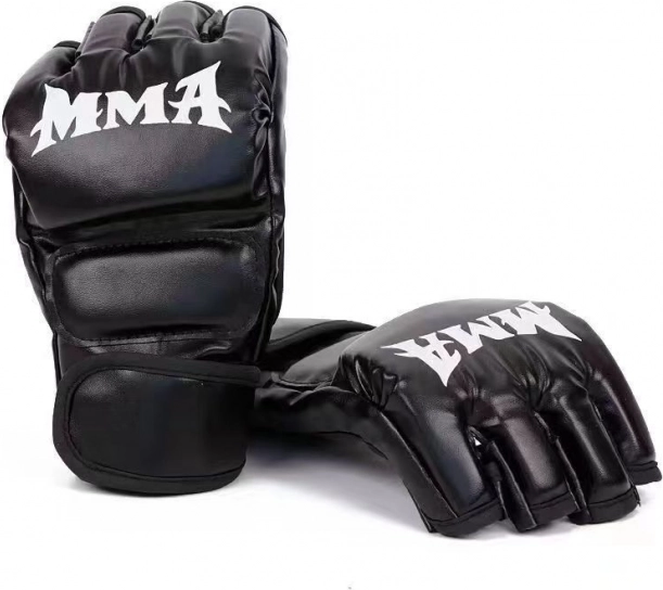 Mănuși MMA concepute pentru a oferi protecție maximă și confort în timpul antrenamentului. Finisajul lor negru cu inscripția albă „MMA” nu doar arată profesional, ci este și o declarație stilistică evidentă.