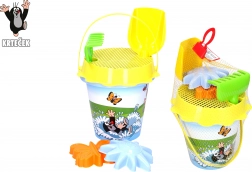 Acest set albastru pentru nisip cu motivul KRTEK va încânta orice mic constructor. Datorită selecției practice de unelte, copiii se bucură de joc creativ, dezvoltarea motricității fine și a imaginației – fie în groapa de nisip, fie la mare.