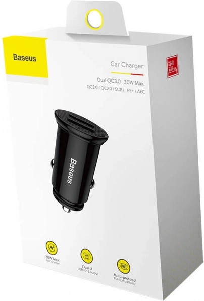 Acest încărcător auto Baseus stilat cu două porturi USB oferă încărcare rapidă datorită suportului tehnologiilor precum QC 3.0 și Huawei SCP. Cu o putere de 30 W, încărca rapid dispozitivele tale.