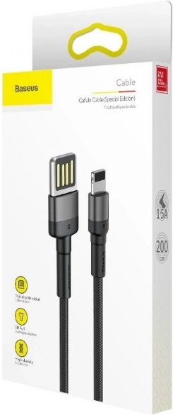 Cablul Baseus Cafule (ediție specială) combină materiale premium și un design practic. Împletitura din nailon rezistent previne încurcarea, conectorii din aluminiu cresc durabilitatea, iar îmbinarea TPE ranforsată protejează cele mai solicitate zone ale cablului. Datorită conectorului USB reversibil și mufei Lightning, este ideal pentru iPhone, iPad și alte dispozitive Apple.