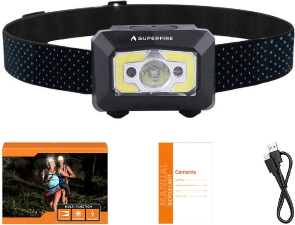 Dioda LED CREE XPG oferă lumină puternică cu o rază de acțiune de până la 130 de metri, în timp ce panoul COB oferă un unghi larg de iluminare. Lanterna frontală oferă cinci moduri de iluminare pentru nevoi diferite.