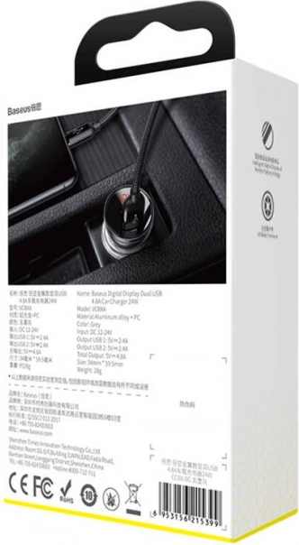 Încărcătorul auto Baseus este proiectat pentru a încărca eficient și rapid dispozitivele dvs., chiar și în timpul călătoriilor. Cu o putere de 4,8 A și două porturi USB, permite încărcarea simultană a două dispozitive fără teama de încetinirea procesului de încărcare.