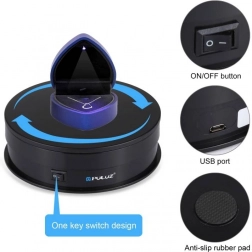 Suportul rotativ panoramic Puluz este soluția perfectă pentru expunerea elegantă a diverselor obiecte, cum ar fi bijuteriile, ceasurile sau gențile mici. Acest suport oferă control ușor printr-un singur buton, facilitând manipularea la pornirea, oprirea sau schimbarea direcției de rotație.