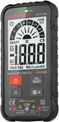 HABOTEST HT112A este un multimetru inteligent modern de nouă generație, cu carcasă ultrafină (doar 1,9 cm), ecran mare și butoane confortabile din silicon. Oferă măsurători precise ale tensiunii, curentului și rezistenței, în curent continuu și alternativ, inclusiv TRUE RMS pentru rezultate fidele chiar și la semnale neliniare. Modul SMART recunoaște automat mărimea măsurată și alege gama optimă.