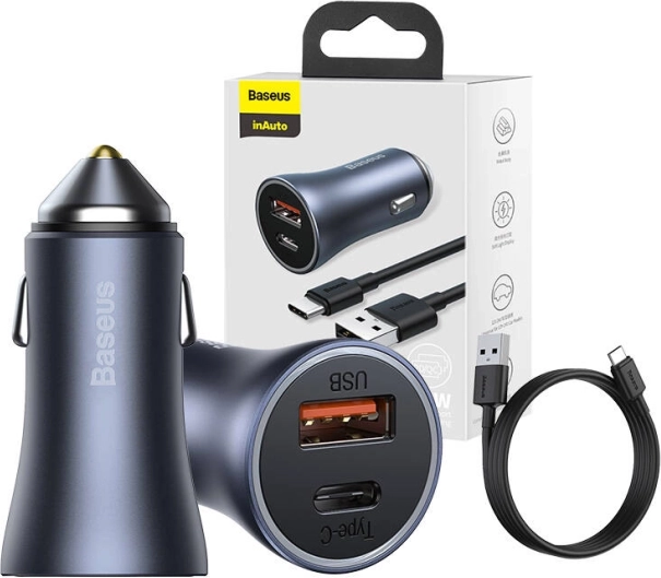 Încărcătorul auto rapid BASEUS Golden Contactor Pro oferă o putere de 40 W, două porturi USB‑A și USB‑C și suport pentru Power Delivery, Quick Charge 4.0+ și SCP. Datorită celor 7 niveluri de protecție, carcasei metalice compacte și cablului USB–USB‑C de 1 m inclus în pachet, încărcați în siguranță telefonul și tableta în orice călătorie.