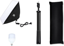 Setul include un softbox de 50x70 cm fabricat dintr-o țesătură reflexivă durabilă. Softboxul cu ecranaj din nylon alb înmoaie lumina și elimină umbrele, creând o iluminare uniformă. Asamblarea și dezasamblarea ușoară asigură flexibilitatea în utilizare.