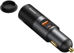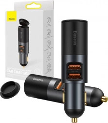 Încărcătorul auto Baseus este echipat cu două porturi USB și un port de extindere pentru brichetă, care permite conectarea altor dispozitive. Datorită designului compact și rezistenței ridicate, este un însoțitor ideal în călătorii.