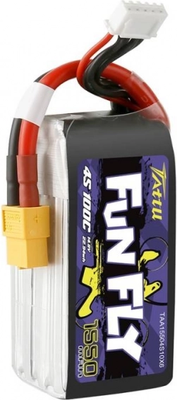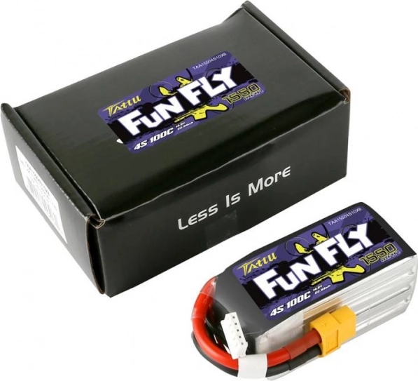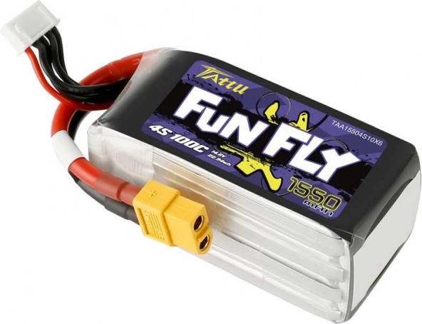 Tattu Fun Fly 1550 mAh 4S este o alegere populară pentru FPV racing și freestyle. Datorită 100C, oferă performanță viguroasă și livrare rapidă a curentului fără scăderi semnificative de tensiune, ceea ce se traduce în răspuns prompt al motoarelor și zbor consecvent mai îndelungat.
