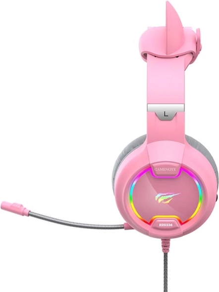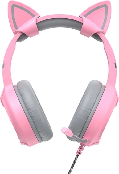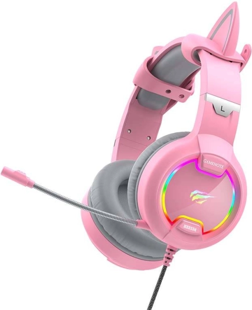 Havit Gamenote H2233D în culoarea roz oferă un design jucăuș cu urechi de pisică detașabile și efect RGB pronunțat. Datorită difuzoarelor mari de 50 mm obții o scenă sonoră extinsă, bass îmbunătățit și redare detaliată a efectelor pentru o experiență de joc captivantă.