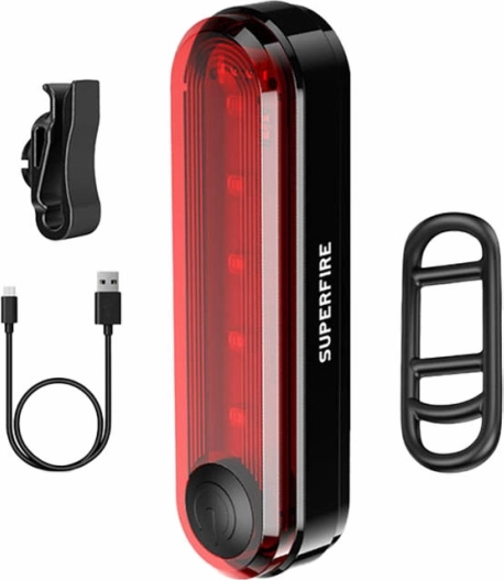 Bucurați-vă de liniște pe drumuri cu lumina spate Superfire, proiectată pentru vizibilitate maximă. Patru moduri diferite de iluminare vă permit să ajustați strălucirea conform nevoilor dumneavoastră. Cu încărcare USB, este rapid de pregătit pentru utilizare, iar rezistența IP44 asigură rezistența la ploaie.
