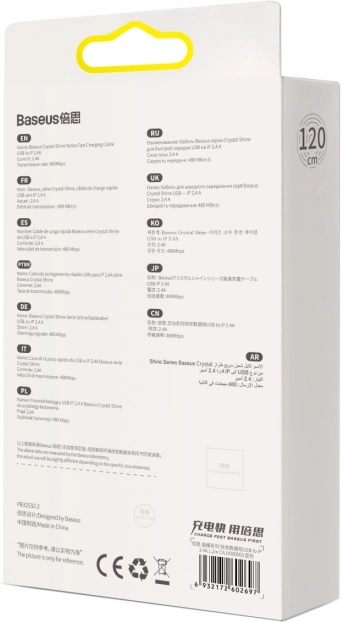 Cablul Baseus Crystal Shine, elegant și durabil, oferă încărcare rapidă 2,4 A, transfer de date simultan 480 Mb/s și împletitură textilă rezistentă cu conectori metalici pentru o durată de viață îndelungată. Datorită reglării inteligente a temperaturii, încărcarea este sigură și fiabilă.