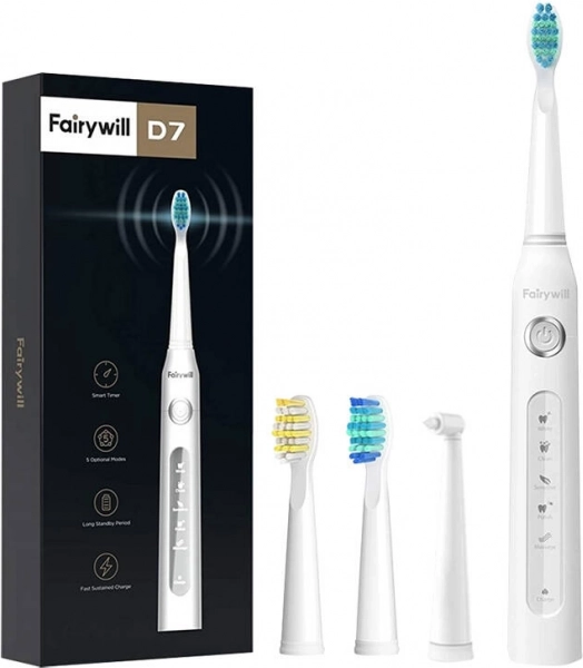 Experimentați un zâmbet strălucitor cu Periuța electrică sonică FairyWill. Certificată ADA, aceasta generează vibrații de până la 40.000 pe minut și oferă 5 moduri de operare pentru nevoile dumneavoastră. Dotată cu un cronometru inteligent de 2 minute și o baterie cu autonomie lungă, aceasta vă va asigura până la 30 de zile de utilizare cu o singură încărcare. Include capete interschimbabile.