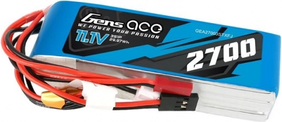 Bateria Gens Ace cu capacitatea de 2700mAh și tensiunea de 11.1V este proiectată pentru alimentarea fiabilă a dispozitivelor telecomandate. Cu performanță ridicată și conectori FUTABA/JST-XHR-3P/JST-SYP, este alegerea ideală pentru modelatori.