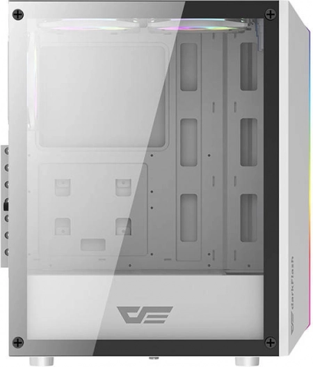 Carcasa este concepută pentru un flux de aer eficient – din fabrică include 3 ventilatoare (DarkFlash C6 White) și suportă până la 6 poziții pentru ventilatoare, precum și instalarea răcirii cu lichid (până la 360 mm în față). Spațiul interior găzduiește fără probleme o placă video de până la 290 mm și un cooler CPU de până la 160 mm. Este de la sine înțeles prezența unui panou I/O practic cu USB 3.0, USB 2.0, conectori audio și butoane de pornire, reset și LED.