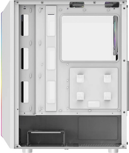 Din fabrică este echipată cu 3 ventilatoare (DarkFlash C6 White) și suportă până la 6 poziții pentru ventilatoare. Posibilitate de instalare a răcirii cu lichid de până la 360 mm în față.