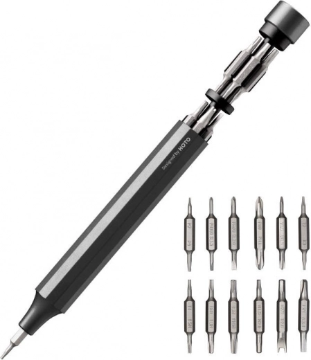 Descoperiţi şurubelniţa de precizie HOTO, ideală pentru toate nevoile de reparaţii şi bricolaj. Este confecţionată dintr-un aliaj de aluminiu durabil şi oferă confort superior în utilizare, chiar şi pe termen lung. Setul include 12 biţi dubli, ceea ce reprezintă 24 de tipuri diferite, depozitaţi într-o cutie magnetică.