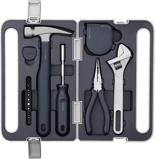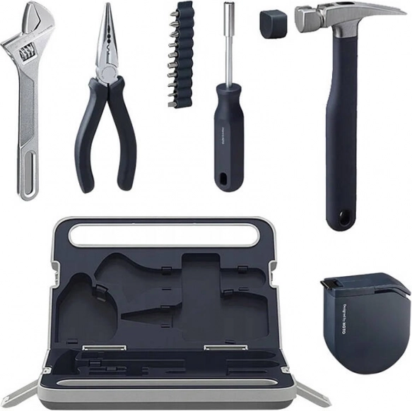 Set practic de unelte de la marca HOTO, parte a ecosistemului Xiaomi, oferă toate instrumentele de bază pentru utilizare casnică și în atelier. Conține instrumente universale, cum ar fi ciocan, șurubelniță, ruletă și altele, fabricate din materiale de înaltă calitate pentru a garanta confort și durabilitate în utilizare.