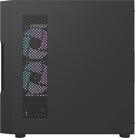 Panoul lateral al carcasei este prevăzut cu balamale practice, astfel încât îl poți deschide ușor pentru a schimba componentele sau pentru a curăța piesele. Pentru construcția sa s-a folosit sticlă securizată, care permite expunerea componentelor din interior – de exemplu celor cu iluminare colorată. Deschiderea este facilitată de un mâner special, tip „mătase”. Panoul frontal cu structură tip plasă și filtru PVC conferă carcasei un caracter industrial și mai interesant.