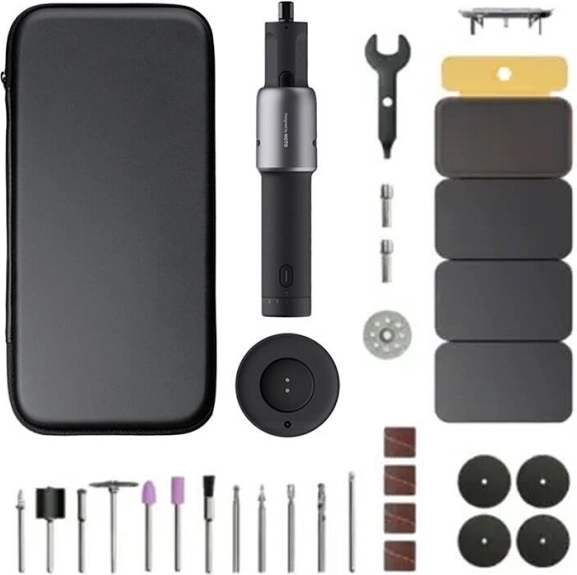 Pachetul include un spectru larg de accesorii cum ar fi burghie, capete de șlefuit, discuri de lustruire și capac de protecție împotriva prafului, care extind posibilitățile muncii dumneavoastră. Materialul utilizat este plastic TPU cu suprafață cauciucată pentru o prindere sigură și iluminat LED încorporat pentru muncă în condiții reduse de lumină.