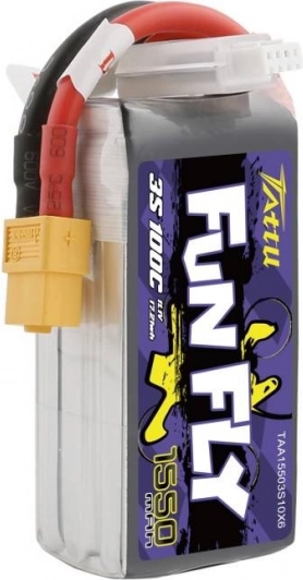 Tattu Fun Fly este o baterie fiabilă destinată dronelor controlate de la distanță. Are o capacitate de 1550mAh și oferă performanțe stabile cu o încărcare de curent de 100C, asigurând o stabilizare a zborului lină și durabilă. Această baterie este ușor de integrat datorită conectorului său universal XT60.